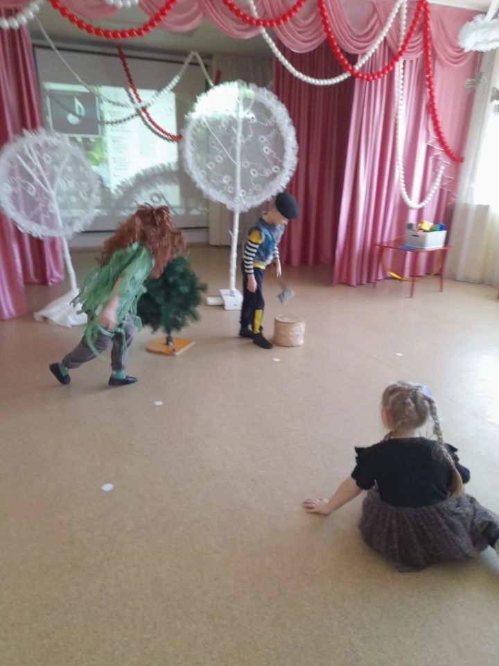 Кульминацией стал момент «защемления пальцев» в бревне — известный сюжет из сказки, который дети разыграли с большим азартом и смехом. Однако история закончилась хорошо: лесные жители помирились, а завершилось все веселым хороводом под финальную музыку Фарида Яруллина.